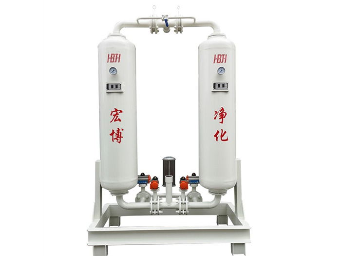 無(wú)熱吸附式干燥機(jī)是利用變壓吸附的原理,使干燥機(jī)在管網(wǎng)壓力下吸附,然后在切換到大氣壓下脫附,并從干燥機(jī)出口引回約12-14%的干燥成品氣對(duì)干燥劑進(jìn)一步凈化再生。雙塔交替進(jìn)行以上過(guò)程,向用氣點(diǎn)提供干燥的壓縮空氣。